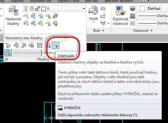Jana K.: „Nedaří se mi v AutoCADu odstranit hladinu, mám pocit, že v ní opravdu nic nemám nakresleno, ale pořád mi ji funkce Čistit nenabízí k vyčištění. Nemám ji nastavenou jako aktuální hladinu na kreslení, myslím, že není použita ani v žádných blocích a přesto pořád nic. Můžete mi poradit?“